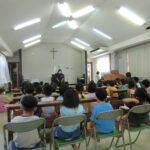 会堂礼拝(2022.7.14) - Category - 日々の活動 会堂礼拝をおこないました。 葛井牧師先生より今月の聖句についてお話していただきました。 子ども達は静かにお話を聞くことができていました。
