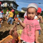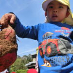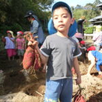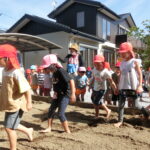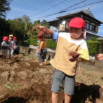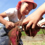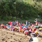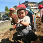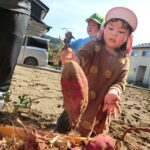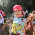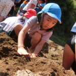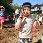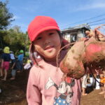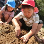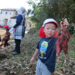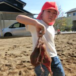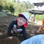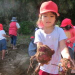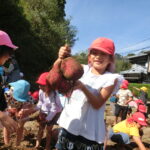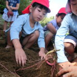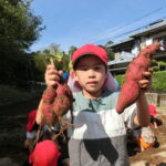 いもほり(2022.10.11) - Category - 日々の活動 おいもほりをおこないました。 幼稚園から歩いて松井さんの畑までいきました。 4月中旬にイモのつるを植えて6ヶ月が経ちます。 卒園生の松井しょうたろう君もいっしょにお手伝いくださいました。りっぱなお兄ちゃんになっていました。 子ども達は手で土をかき分けて大きなサツマイモを見つけて大喜びしていました。 ほんとうに大きなさつまいもをいっぱい収穫することができました。お世話をしてくださった松井さんに感謝です。
