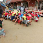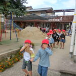 園庭で点呼のあと、火災の延焼を想定してサンサン広場まで更なる避難をする訓練もしました。