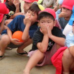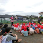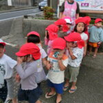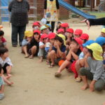 火災が発生の笛の音と先生の声を聞いて、子ども達はしっかりと姿勢を低く手と鼻を押さえる行動できていました。