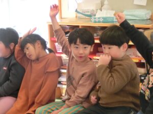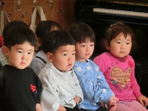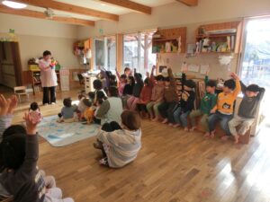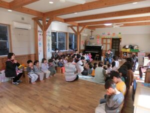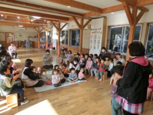 今日は3学期の始まりの始園式をおこないました。みんな元気に幼稚園にきてくれました。3学期はおもちつき、豆まきなど行事も多いですが、がんばった子どもたちの成長した姿が楽しみです。