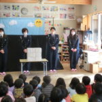 交通安全教室(2022.2.25) - Category - 日々の活動 交通安全協会から4名の女性職員の方に来てもらいました。 子ども達には、紙芝居やパペット劇などで交通事故ついてや、子ども達の飛び出し、信号についてわかりやすく交通安全について教えていただきました。 最後に子ども達と➀信号はまもります。➁道路ではあそばない。➂飛び出さない この3つを子ども達とお約束しました。