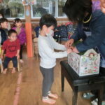 終園式(2022.12.23) - Category - 日々の活動 2学期最後の終園式です。 2学期はたくさんの行事がありました。うんどうあそび会やクリスマス会など盛りだくさんでした。 入倉園長先生のおはなしと葛井牧師先生のお祈りの後、クリスマスを待つアドベントの最後の日、アドベントハウスが開きました。 アドベントハウスが開いた中には、子ども達へのたくさんのプレゼントが用意されていました。 明日から冬休み、たのしいクリスマスやお正月を迎えてくださいね。