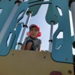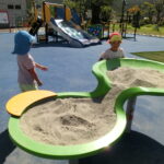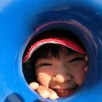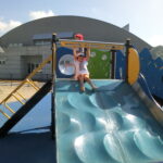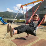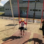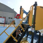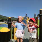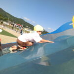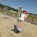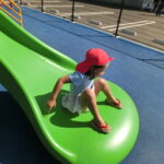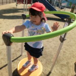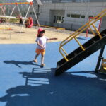 広い広場にめずらしい大きな滑り台や回転遊具などがあり、子どもたちはあっちにいったり、こっちにいったり走り回りながら遊んでいました。