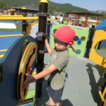 黄組、赤組、白組さんは汽車に乗り、新しくできた北郷の道の駅まで遠足にいきました。
