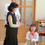 お誕生会(2024.4.19) - Category - 日々の活動 森山すずちゃん (4月3日生まれ) ままごとの大好きなすずちゃん。 毎日、のぼり棒とうんていの練習を頑張っています。 大きくなったら”あ~にゃ”になりたいな♡ 髙橋はるちゃん ちょっぴりはずかしがりやの女の子 お友だちとあそぶのが大好きで毎日楽しそうにすごしています。 さかあがりもとてもじょうずですよ。 中田みことちゃん うたやダンスがだいすき! 苦手なことにも一生けん命取組む、がんばりやさんです。 笑顔が素敵な女の子。