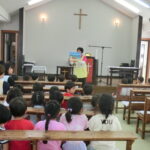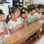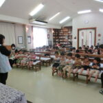 子どもたちは静かにお話を聞くことができていました。